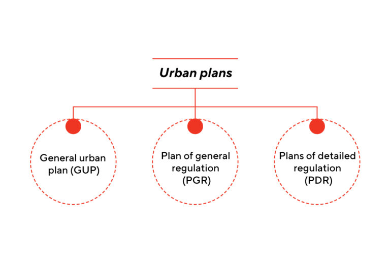 Urban plans may be divided into the strategic general urban plan (GUP) and regulation plans – plan of general regulation (PGR) and plan of detailed regulation (PDR).