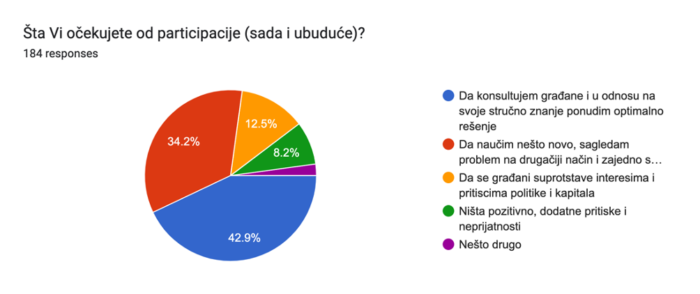 - Po Vašem mišljenju, šta uprava i donosioci odluka prvenstveno očekuju od participacije?