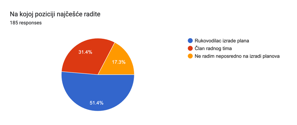 Rezultati ankete koju je popunilo 185 planera, prikazani su u nastavku – za rezultate i tumačenja ankete kliknite na naslov svakog poglavlja, a zatim i za izrađen set preporuka za unapređenje.
