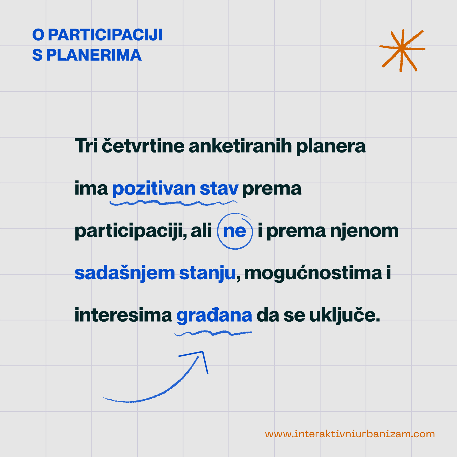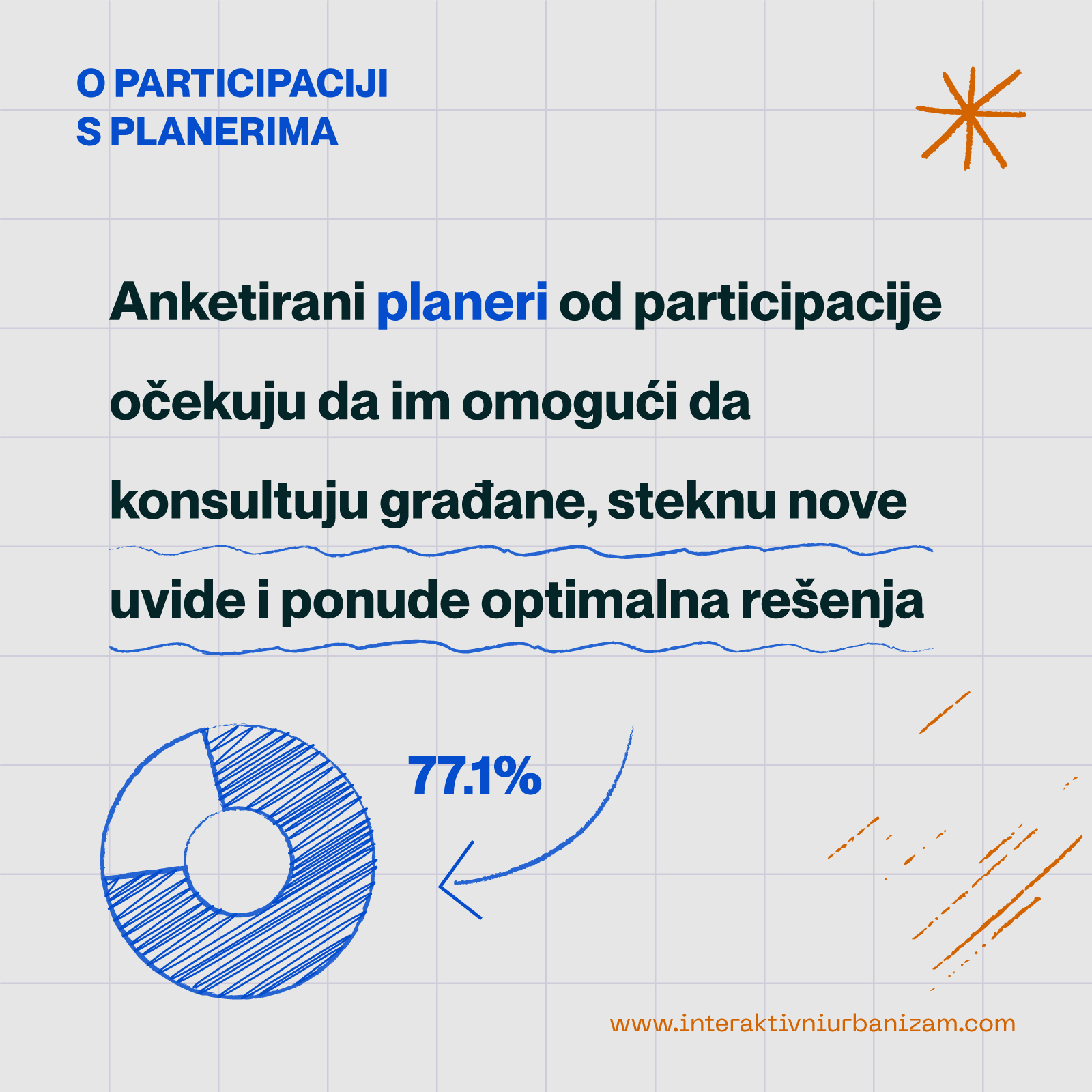 Velika većina anketiranih planera, od kojih su mahom iskusni urbanisti sa preko 15 ili čak 30 godina iskustva rada u javnom sektoru, i to na rukovodećim pozicijama izrade plana, ima pozitivan stav prema unapređenju participacije, ali ne i prema njenom sadašnjem stanju, kao ni spremnosti i mogućnosti građana da se uključe, pa ni njihovim sadašnjim interesima.